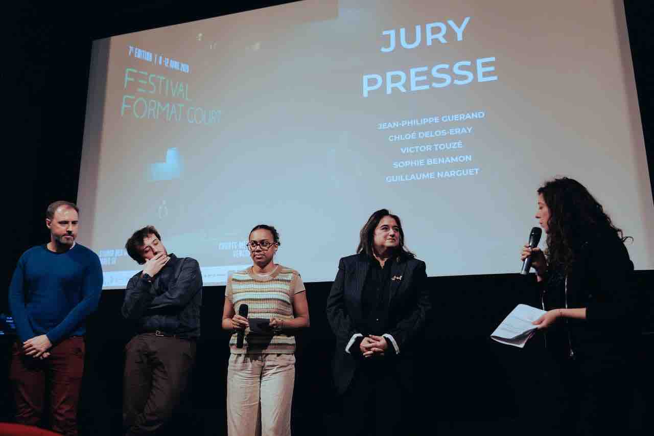 Membre du jury presse de cette 7e édition du Festival Format Court, j’ai eu le plaisir de participer, aux côtés de Jean-Philippe Guerand, Chloé Delos-Eray, Victor Touzé et Guillaume Narguet, à la remise du Prix de la presse au film Au bain des dames de Margaux Fournier. Un choix qui reflète notre plaisir devant ce premier film lumineux, un documentaire qui nous offre un regard poétique, burlesque, touchant sur le corps des femmes âgées. Le film est à voir d’urgence jusqu’au 12 juin sur la plateforme France.tv. Du 8 au 12 avril 2026, le Studio des Ursulines (Paris 5e) a accueilli neuf séances, dont cinq compétitives, en présence de plus de 80 invités. La comédienne Clotilde Hesme, marraine de cette édition, a ouvert les festivités avec quatre courts enchanteurs, tandis que Carine Tardieu (César du meilleur film avec L’attachement) a offert une masterclass.